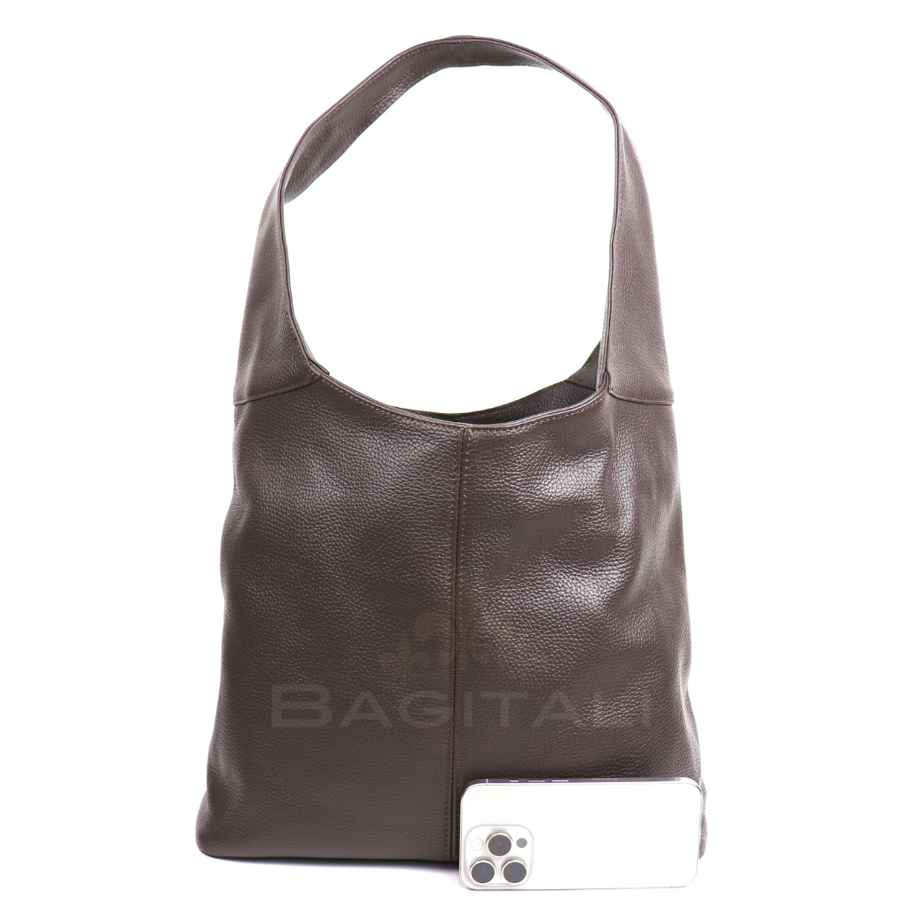 This bag features a sleek and comfortable shoulder strap. Its internal centre compartment is secured with a convenient zip fastening, providing ample space for your essentials while maintaining easy access. Pouch pocket is also included ensuring your phone is always within reach and a small zip pocket offers secure storage for smaller items such as keys or cards. Crafted with attention to detail, this bag showcases seam detailing that runs through the centre front and back, adding a touch of sophistication to its overall design.